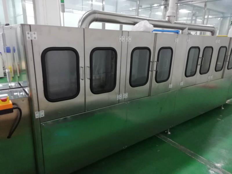 (3)刷洗后,電池進入噴淋沖洗段,經過一定的壓力噴洗將前面刷洗后的電池進一步的清洗一下,以輔助后面的高壓噴淋漂洗更干凈。